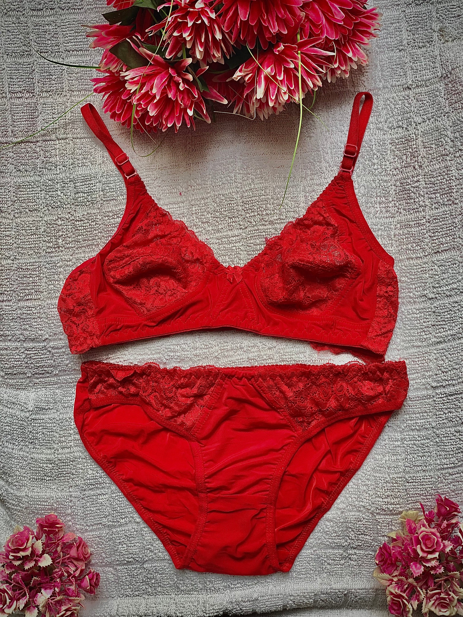 The bra comes with adjustable straps and a secure hook closure for better support, while the matching panty offers a comfortable fit with a flattering lace touch.